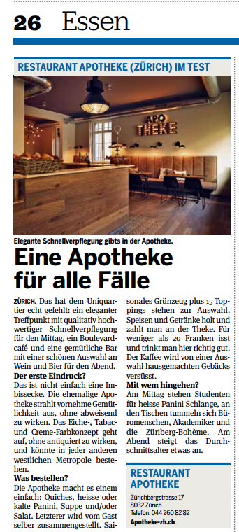 Bericht im Tages Anzeiger vom 13. Juli 2015